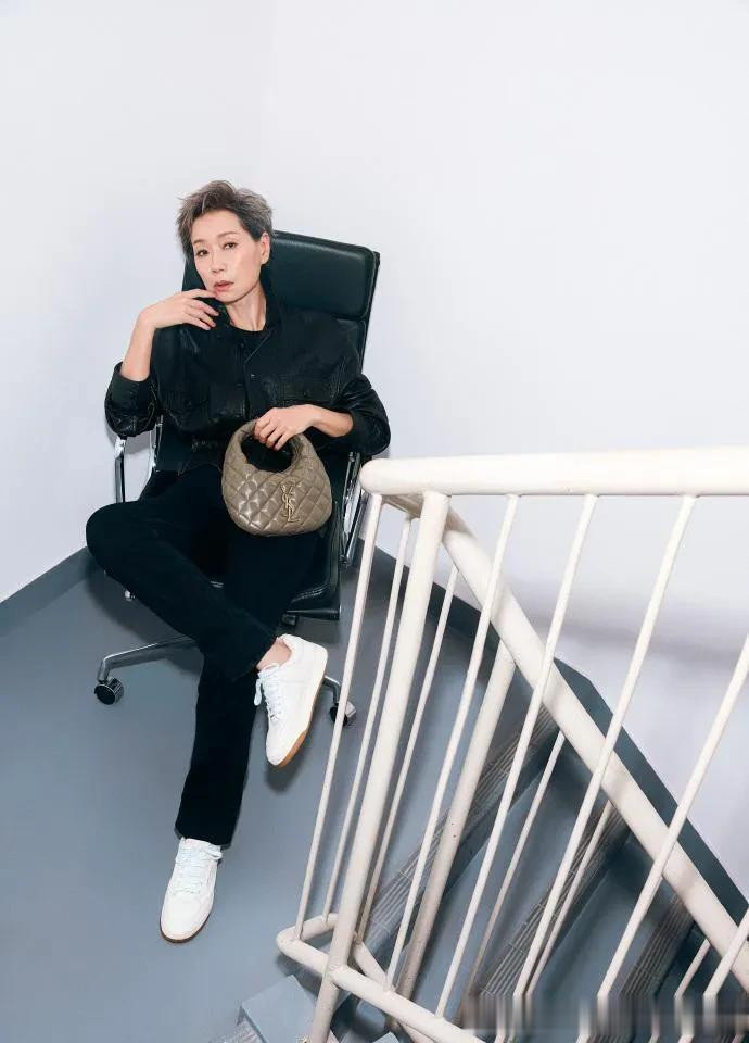 叶童换风格后气质大变! 穿束腰皮衣+小黑裤, 时髦洋气又高级!